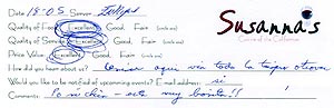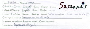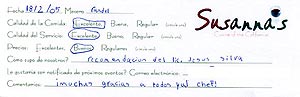 Estas Tarjetas de Opinion fueron escrits por nuestros visitantes despues de cenar en nuestro restaurant. Deseamos agradecerles sus opiniones, y compartirlas con usted. Por favor haga click en las tarjetas para agrandarlas.