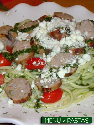 Linguine tossed in a fresh Cilantro Pesto topped with Pear Tomato